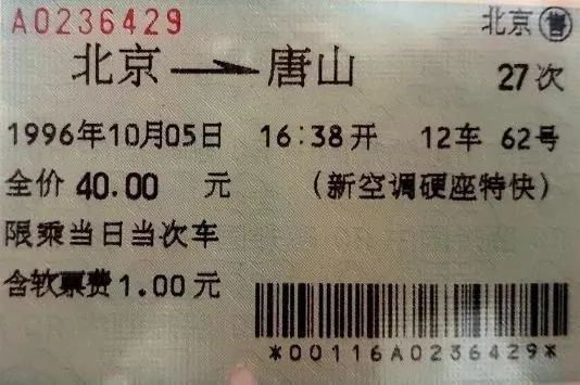1996年,27次列车的软纸火车票。国铁北京局供图